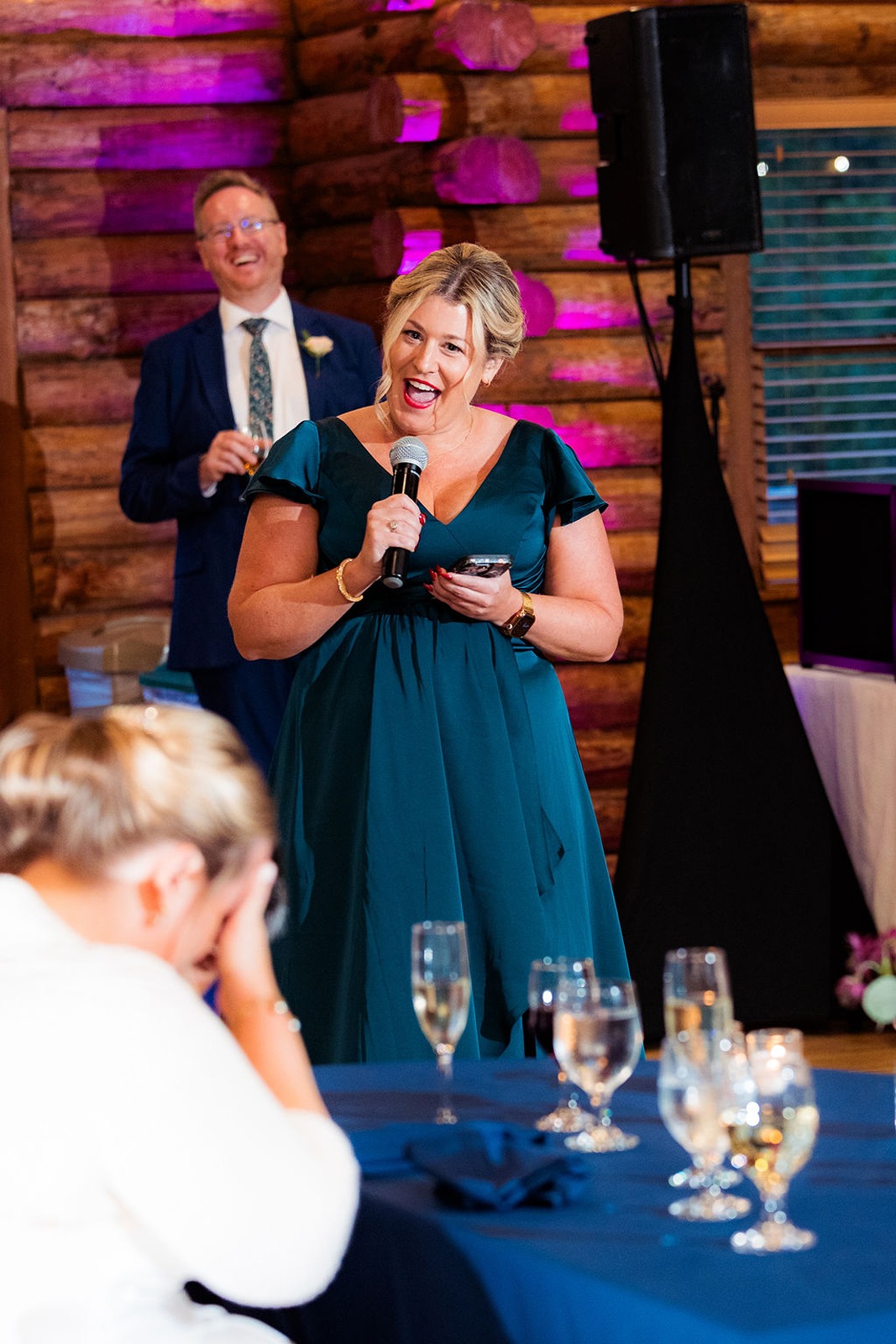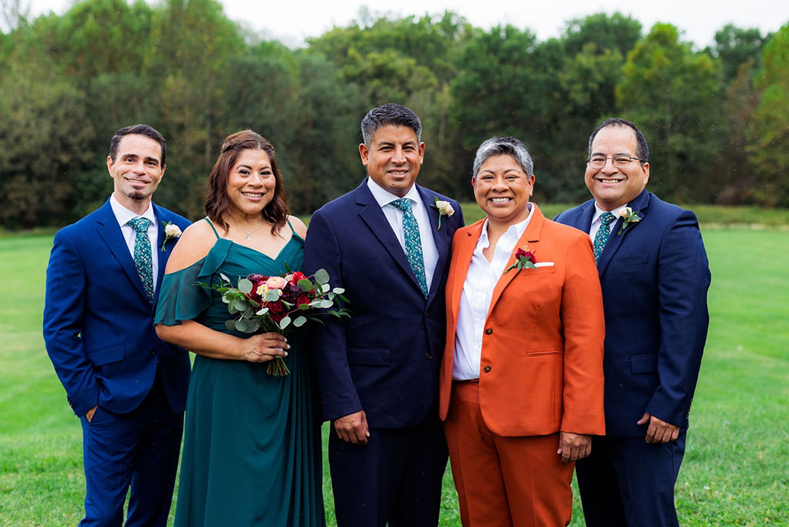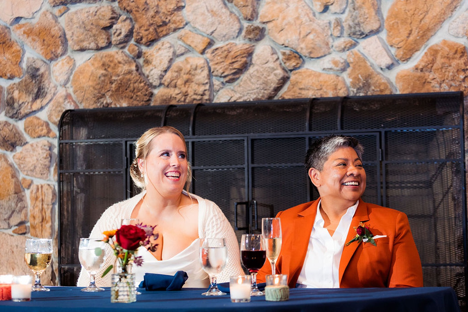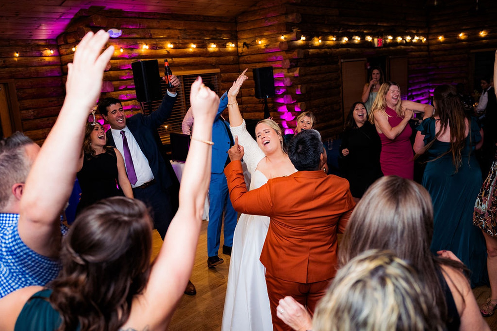 Every part of this wedding felt intentional. Sandra’s brother officiated the ceremony, blending faith and family with warmth and humor that had everyone smiling. The color palette drew from the rich tones of fall, rust, deep gold, and earthy greens, which looked stunning against the natural wood interior of the lodge.